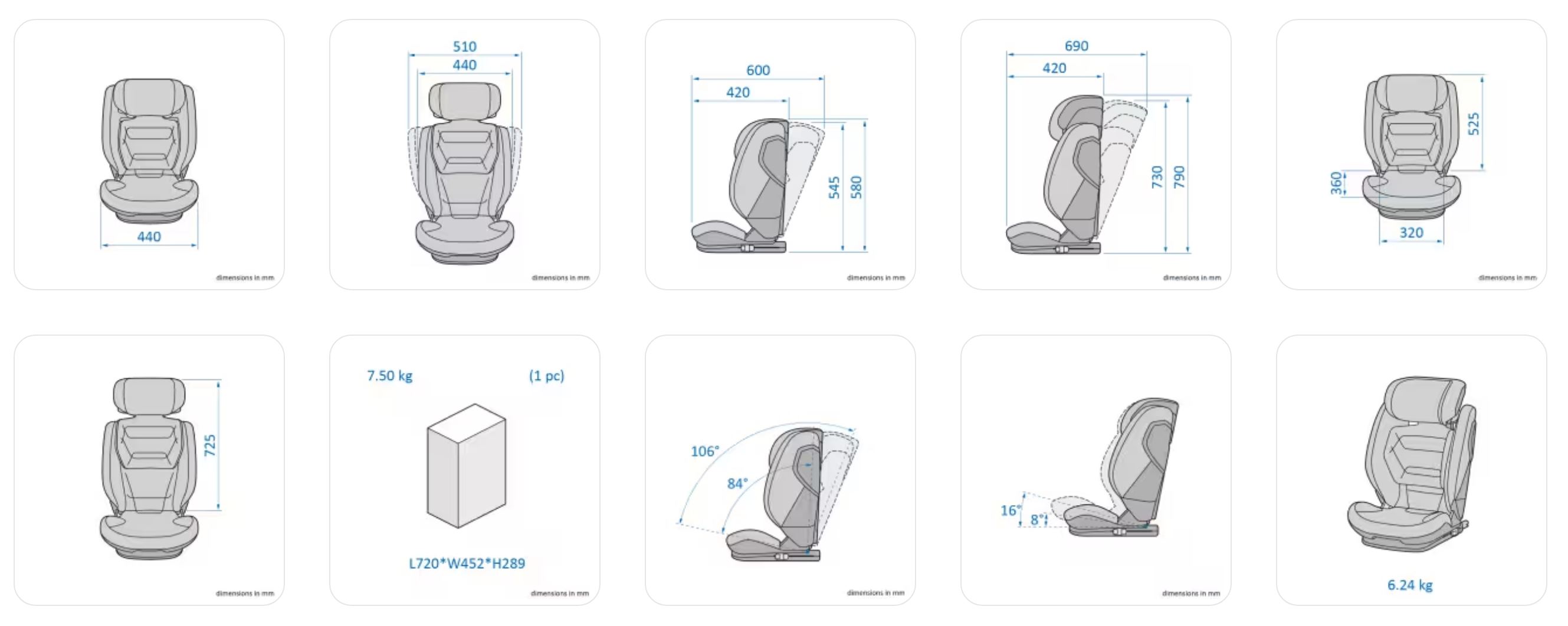 Підголівник і спинка автокрісла регулюються одним натисканням кнопки, що дозволяє підлаштувати сидіння під зростання дитини. Ця функція дозволяє легко регулювати сидіння, забезпечуючи комфорт на кожному етапі розвитку.