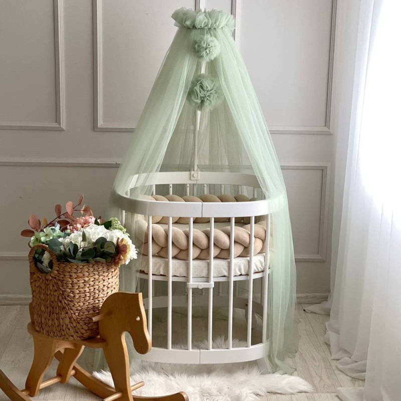 Виконаний з тоненької шестигранної легкої сіточки. Технологія в'язки розроблена фахівцями в області дитячих товарів. Завдяки такому підходу, балдахін прекрасно пропускає повітря, оберігаючи сон малюка від комах і вітру. Достатня прозорість дозволяє спостерігати за дитиною. Завдяки легкій тканині створюється особлива ніжна атмосфера дитячої кімнати.
