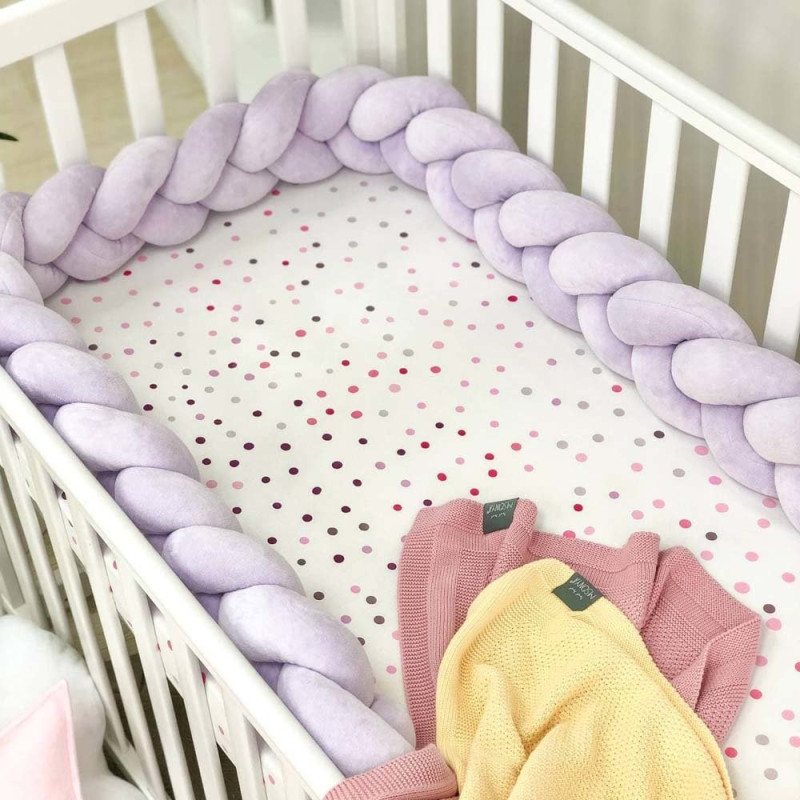 Бортик-коса- стильний, м'який, приємний на дотик захист, не обмежує доступ повітря в ліжечко, зручний, не займає багато місця. Підходить для прямокутних, овальних і круглих ліжечок. Коли малюк підростає, незамінний для ігор і для декору дитячої кімнати. До народження малюка, можна використовувати, як зручну подушку для відпочинку.