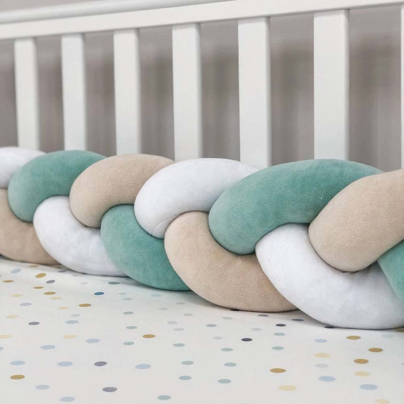 Бортик-коса- стильний, м'який, приємний на дотик захист, не обмежує доступ повітря в ліжечко, зручний, не займає багато місця. Підходить для прямокутних, овальних і круглих ліжечок. Коли малюк підростає, незамінний для ігор і для декору дитячої кімнати. До народження малюка, можна використовувати, як зручну подушку для відпочинку.