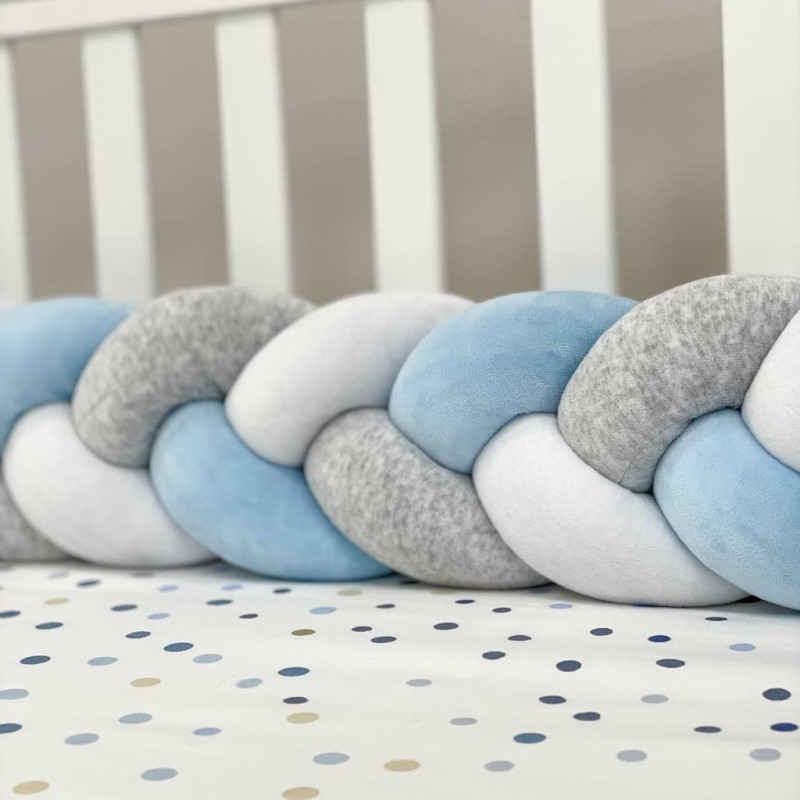 Бортик-коса- стильний, м'який, приємний на дотик захист, не обмежує доступ повітря в ліжечко, зручний, не займає багато місця. Підходить для прямокутних, овальних і круглих ліжечок. Коли малюк підростає, незамінний для ігор і для декору дитячої кімнати. До народження малюка, можна використовувати, як зручну подушку для відпочинку.