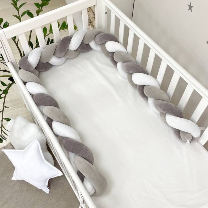 Бортик-коса- стильний, м'який, приємний на дотик захист, не обмежує доступ повітря в ліжечко, зручний, не займає багато місця. Підходить для прямокутних, овальних і круглих ліжечок. Коли малюк підростає, незамінний для ігор і для декору дитячої кімнати. До народження малюка, можна використовувати, як зручну подушку для відпочинку.