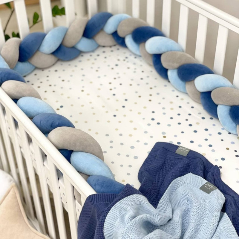 Бортик-коса- стильний, м'який, приємний на дотик захист, не обмежує доступ повітря в ліжечко, зручний, не займає багато місця. Підходить для прямокутних, овальних і круглих ліжечок. Коли малюк підростає, незамінний для ігор і для декору дитячої кімнати. До народження малюка, можна використовувати, як зручну подушку для відпочинку.