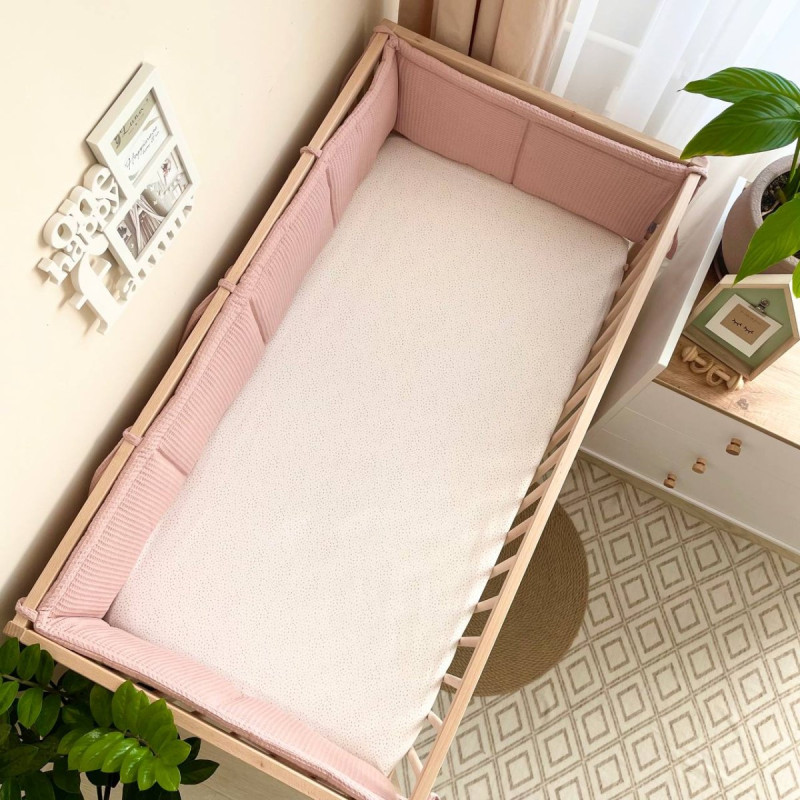 Фенс-бортики - новий різновид цілісних бортиків на три сторони ліжечка. За допомогою зав'язок вони кріпляться на стінки ліжечка, створюючі затишне "гніздечко" для сну немовляти.
