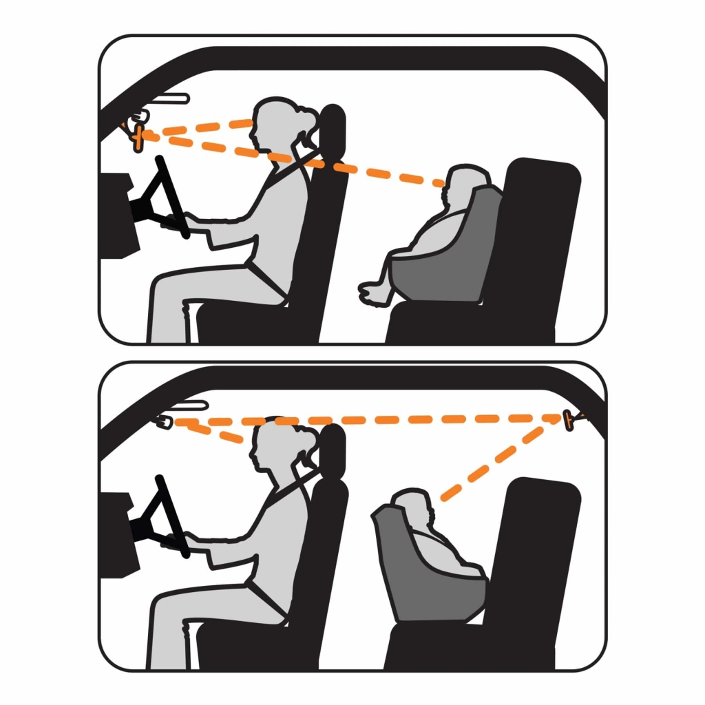Дзеркало можна швидко встановити на будь-якому чистому вікні або лобовому склі: просто змастіть присоску водою, прилаштуйте дзеркало, а потім закріпіть його за допомогою важеля. Коли дзеркало більше не потрібне, його легко зняти. Регулювання дозволяє коригувати його положення по мірі зростання вашої дитини, забезпечуючи максимальний комфорт і безпеку. Також його можна встановити на заднє вікно, для ще кращого огляду.