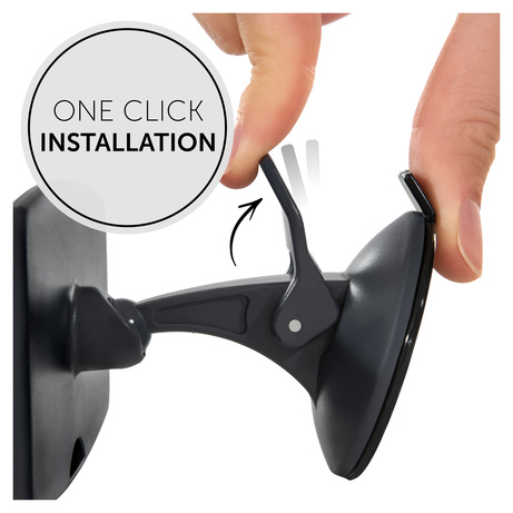 Легко встановлюється за допомогою надійної каучукової присоски, яка фіксується на будь-якій чистій і знежиреній скляній поверхні.