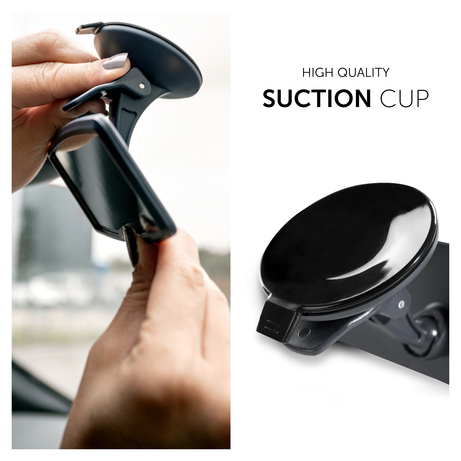 - Легке кріплення на лобове скло за допомогою каучукової присоски.