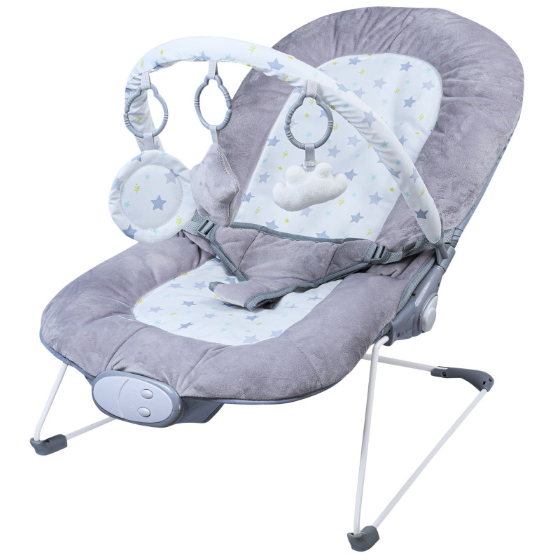 Гойдалка FreeON Happy Grey. Барвиста гойдалка з ігровою аркою (знімна) та багатьма іграшками привертає увагу малюка, заохочує його до руху та позитивно впливає на його моторний розвиток. Функціональна гойдалка оснащена функцією музики з налаштуваннями гучності та ніжною вібрацією з налаштуваннями потужності, 3-точковою системою ременів безпеки, яка захищає дитину, і регульованою спинкою в різних положеннях, що пропонує вам індивідуальне налаштування до розміру та рівня розвитку дитини. Додатковою перевагою є знімний чохол, який можна прати. 2 батарейки 1,5V ˝C˝ в комплекті. Спинка регулюється в 3 положеннях. Ваш малюк заспокоюється мякими вібраціями (3 положення)