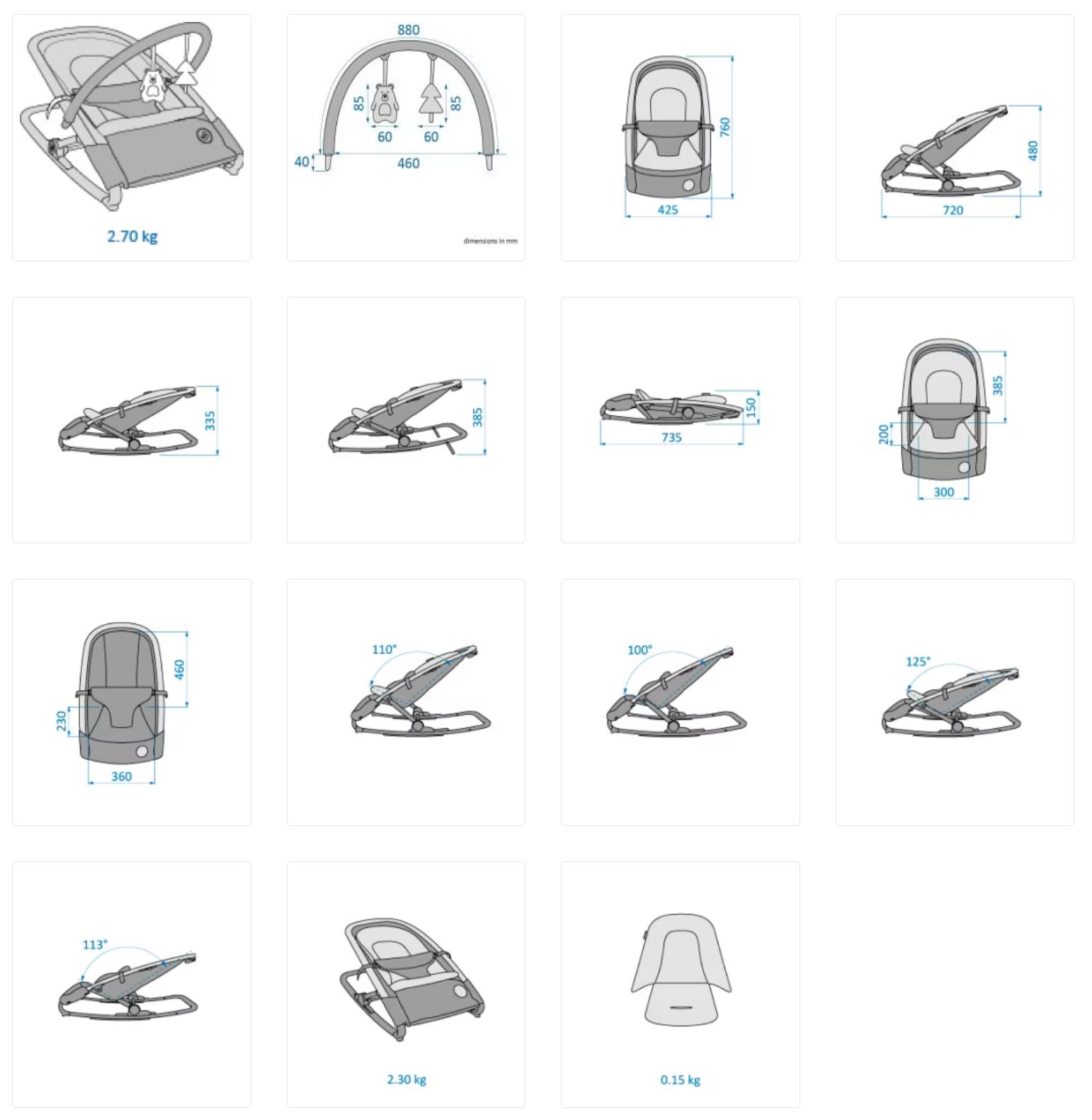 Гойдатися, гратися, сидіти, їсти або відпочивати — ваш малюк може робити все це з комфортом і стилем, починаючи з самого народження. Завдяки м'якому вкладишу для найменших та трьом положенням нахилу, Kori — це безпечний простір, де ваш малюк може розслабитися та відпочити, або енергійно пограти, коли вам потрібні вільні руки. А іграшкова арка над головою буде стимулювати та розважати дитину.