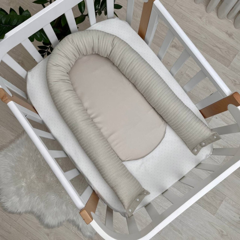 Кокон DreamLand - це невеликий, ергономічний, плоский матрац з м'якими обмежувальними бортиками із трикотажної тканини "косичка" по всьому периметру заввишки 10 см. Матрацик пошитий із сатину (100% бавовна). Наповнювач матраца - піна, пружний, сучасний, модифікований матеріал, який рівномірно розподіляє навантаження, завдяки чому малюк почуває себе затишно і комфортно. Чохол матраца пошитий з мікрофібри. Наповнювач для бортиків - силіконізоване волокно. Бортики фіксуються за допомогою кнопок.