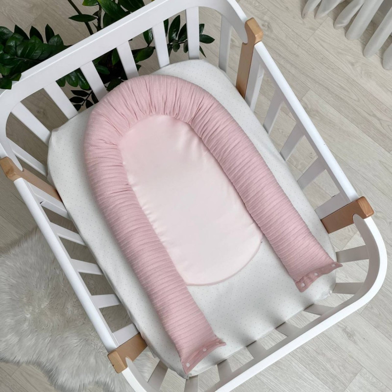 Кокон DreamLand - це невеликий, ергономічний, плоский матрац з м'якими обмежувальними бортиками із трикотажної тканини "косичка" по всьому периметру заввишки 10 см. Матрацик пошитий із сатину (100% бавовна). Наповнювач матраца - піна, пружний, сучасний, модифікований матеріал, який рівномірно розподіляє навантаження, завдяки чому малюк почуває себе затишно і комфортно. Чохол матраца пошитий з мікрофібри. Наповнювач для бортиків - силіконізоване волокно. Бортики фіксуються за допомогою кнопок.