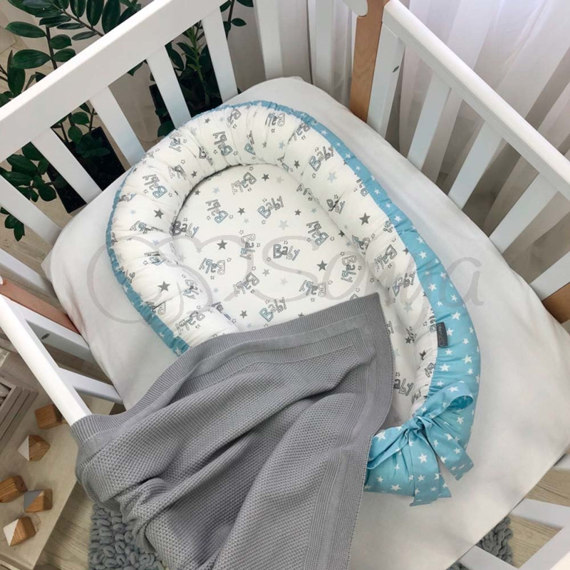 Гніздечко-кокон-це невеликий, ергономічний, плоский матрац з м'якими обмежувальними бортиками по всьому периметру заввишки 15 см. Наповнювач матраца — піна, пружний, сучасний, модифікований матеріал, який рівномірно розподіляє навантаження, завдяки чому малюк почуває себе затишно і комфортно. Чохол матраца пошитий з мікрофібри. Наповнювач для бортиків — силіконізоване волокно. Бортики можна стягнути спеціальною ниткою, яка вже вшита в кокон і зафіксувати бантом, таким чином можна зменшувати, або збільшувати розмір кокона-гніздечка. Тканина чохла — натуральна 100% бавовна поплін.