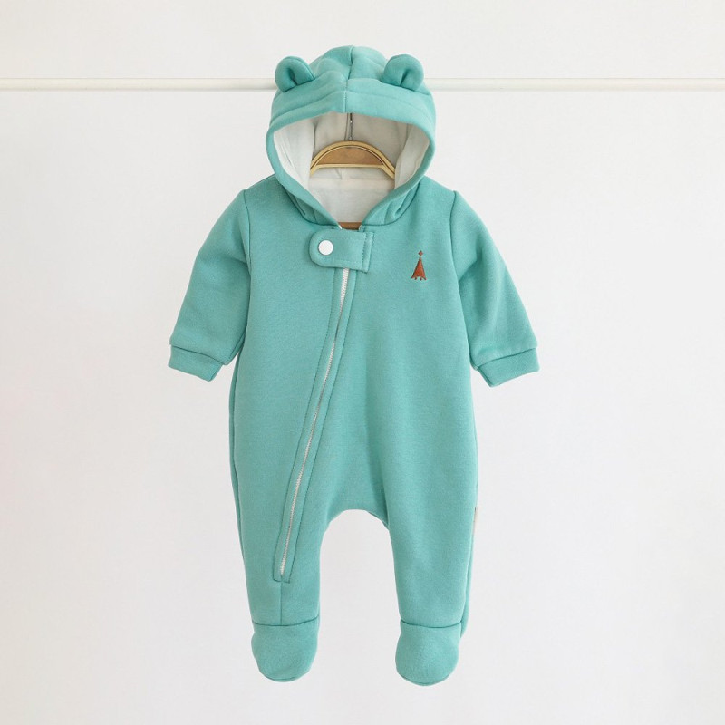 Комбінезон пошитий з футера з начосом зовні (на флісі), трикотажної бавовняної підкладки зсередини і зовсім без утеплювача. Саме таке поєднання робить комбінезон дуже універсальним та він ідеально підходить для виписки в демісезонну пору. У прохолоднішу погоду ви можете використовувати його в комплекті з ковдрочкою, а взимку взагалі як піддьов під зимовий комбінезон. Навесні ж, навпаки. Коли буде становитись з кожним днем тепліше, то комбінезон без утеплення прям саме те.