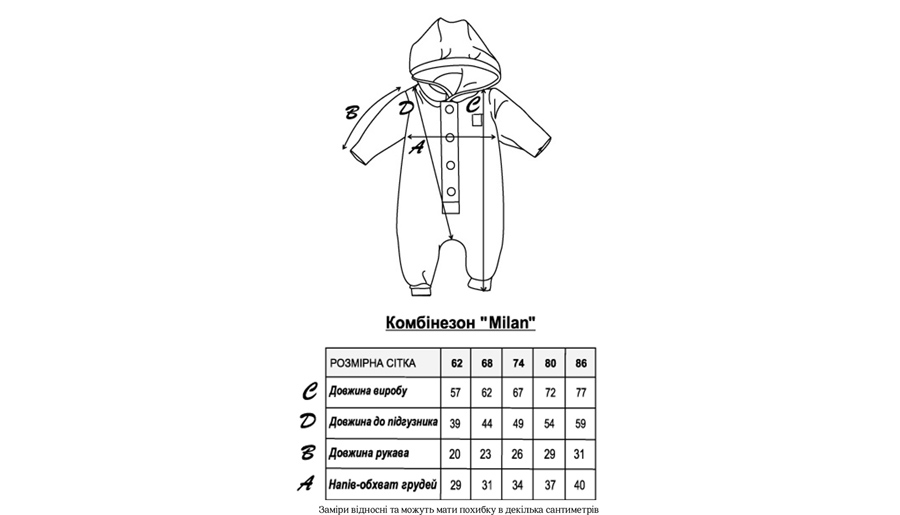 Пошитий з трикотажу — трьохнитки з начосом. В комплект можна придбати пінетки.