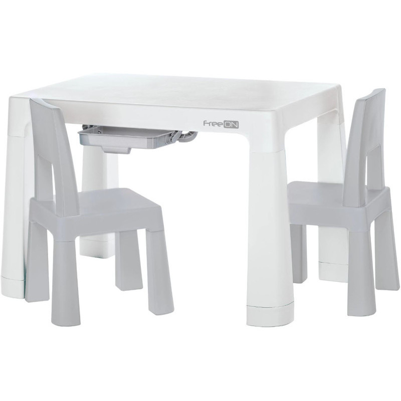 З його сучасним виглядом, дитячий ігровий стіл FreeON NEO з двома стільцями чудово вписується в вітальню, їдальню, дитячу кімнату або ігрові зони. Діти можуть малювати, творити, фарбувати, їсти, читати та грати на ньому.Стіл має дві додаткові висувні ящики, які можуть збагатити гру дітей, а також дозволяють зберігати різноманітні необхідності.Стіл має перевагу бути регульованим на дві висоти, що дозволяє його використання для дітей різного віку. Висота регулюється додаванням або видаленням штирів на ніжках столу.Розміри столу: 78x50x49 см або 78x50x54 смРозміри стільця: 28x28x55 смМаксимальне навантаження столу та стільця - 35 кг.FreeON - це європейський бренд, який пропонує широкий асортимент товарів для малюків та дитячого обладнання. Протягом понад 10 років наші продукти збагачують життя багатьох батьків і дітей. Включіть свободу та турботу разом із FreeON.Якщо у Вас виникли додаткові питання про цей товар, будь ласка, звертайтеся до нашого менеджера. Ми готові надати додаткові фотографії, відео огляд товару та забезпечити консультації щодо можливих технічних характеристик.