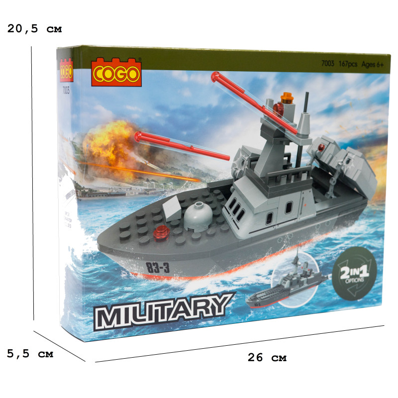 Конструктор COGO 167 Крейсер + Катер 2в1 — це універсальний набір для шанувальників морської техніки, який дозволяє зібрати потужний військовий крейсер або швидкісний катер. Можливість перескладання моделі робить ігровий процес ще цікавішим та тривалішим.