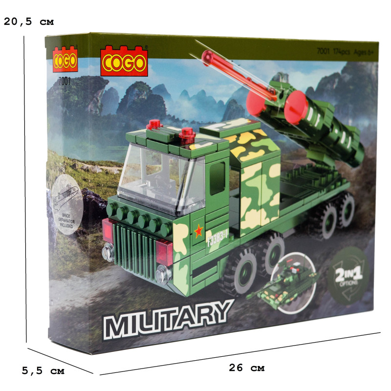 Конструктор COGO 174 Нептун + Танк 2в1 — це універсальний набір для юних поціновувачів військової техніки, який пропонує подвійне задоволення від збірки. Дитина може самостійно обрати, що сконструювати: потужну бойову установку «Нептун» або броньований танк.
