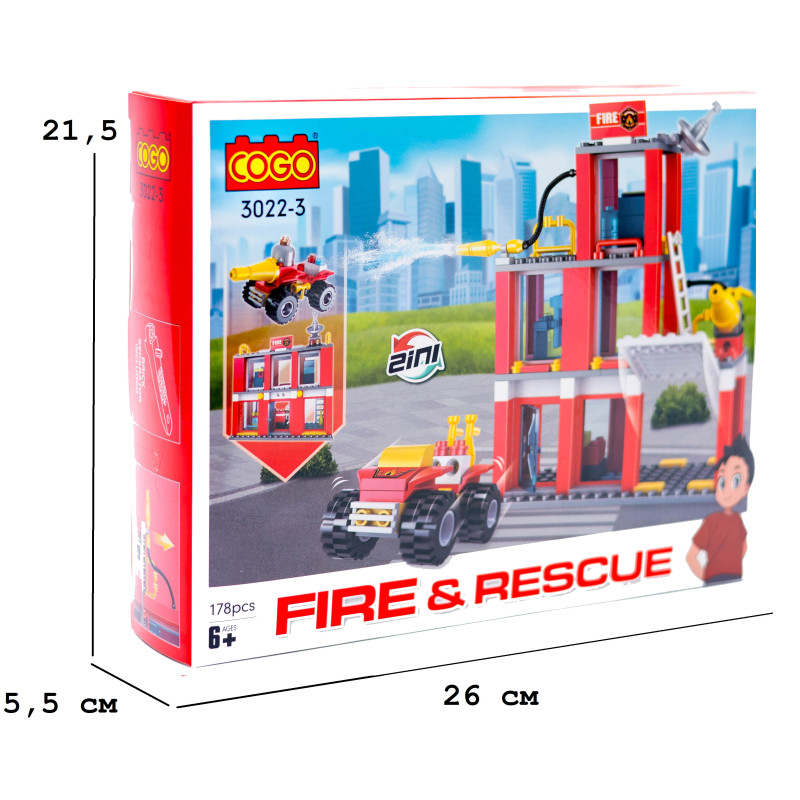 Конструктор COGO 3022 - це іграшкова пожежна машина зі 154 деталей. Він розроблений для дітей і допомагає розвивати дрібну моторику та уяву.