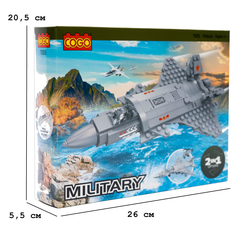 Конструктор COGO 184 Літак + Гелікоптер 2в1 — це динамічний набір для любителів авіації, який пропонує два варіанти збірки в одній коробці. Дитина може самостійно сконструювати маневрений літак або потужний гелікоптер, змінюючи модель за власним бажанням.