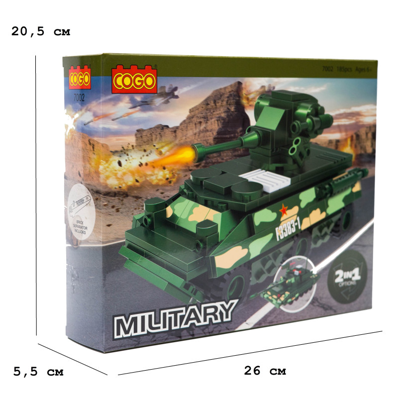 Конструктор COGO 185 БМП + Танк 2в1 — це чудовий набір для юних любителів військової техніки, який дозволяє зібрати на вибір або потужну бойову машину піхоти (БМП), або важкий танк. Модель відрізняється реалістичним дизайном та міцною конструкцією.