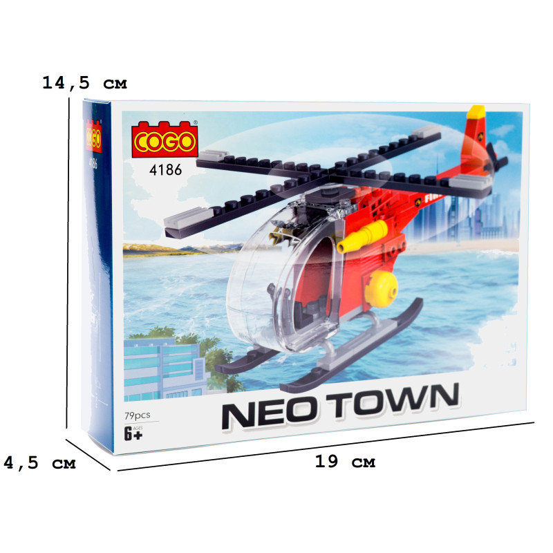Конструктор Cogo City Пожежний вертоліт, арт. 4186 Серед усього розмаїття пожежної техніки особливе місце займають вертольоти. За допомогою цього літального апарату можна гасити пожежі та рятувати людей. Зберіть свій рятувальний вертоліт разом із конструктором Cogo City, арт. 4186. Набір складається з 79 універсальних пластикових деталей, які легко та надійно скріплюються одна з одною. Готовий вертоліт має рухомі деталі, він міцний і не ламається навіть у процесі найактивніших ігор. Він стане чудовим доповненням наборів Пожежної служби і може використовуватися як самостійний ігровий аксесуар. З конструктором Cogo City Вертоліт дитина забуде про нудьгу і з захопленням зануриться в цікаве конструювання. Такі ігри сприяють розвитку практичних навичок, розвивають уяву і фантазію. У процесі складання у дитини розвиватиметься дрібна моторика рук і вміння концентруватися. Деталі конструктора універсальні та сумісні з аналогічними конструкторами світових виробників. У комплекті - 79 деталей. Розмір вертольота: 23*17*8 см. Рекомендовано для дітей від 6 років. Розмір упаковки: 19*4,3*14 см.