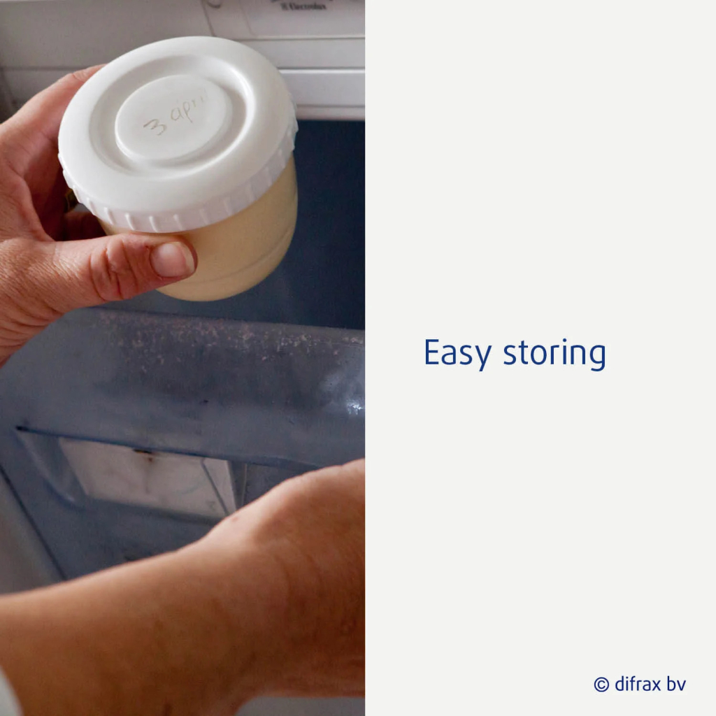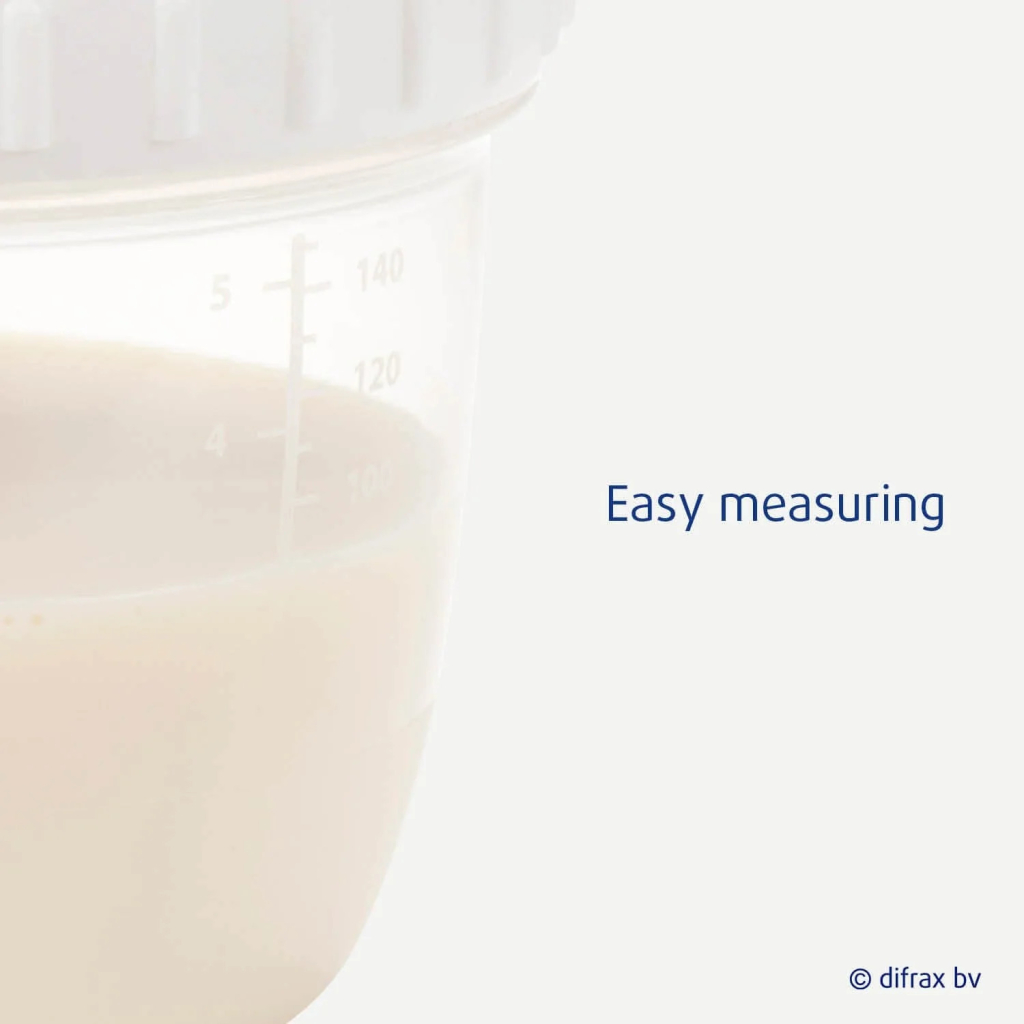 Контейнери Difrax для зберігання грудного молока та дитячого харчування — це ідеальне рішення для гігієнічного зберігання молока, молочних сумішей, каш, дитячого харчування та інших продуктів. Вони можуть бути зручно збережені в холодильнику або морозильній камері, а також розігріті в мікрохвильовій печі, що забезпечує максимальну зручність для батьків. Герметичні кришки контейнерів дозволяють надійно зберігати продукти свіжими, і для вашої зручності їх можна позначити олівцем, що дозволяє легко відстежувати дату зберігання.