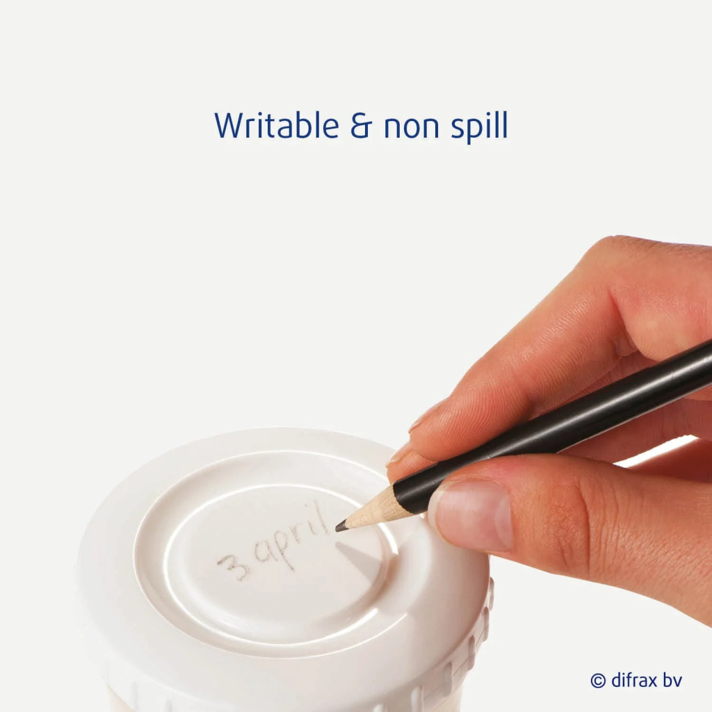 Герметичні кришки можна позначати олівцем для легкого відстеження дати зберігання чи вмісту. |