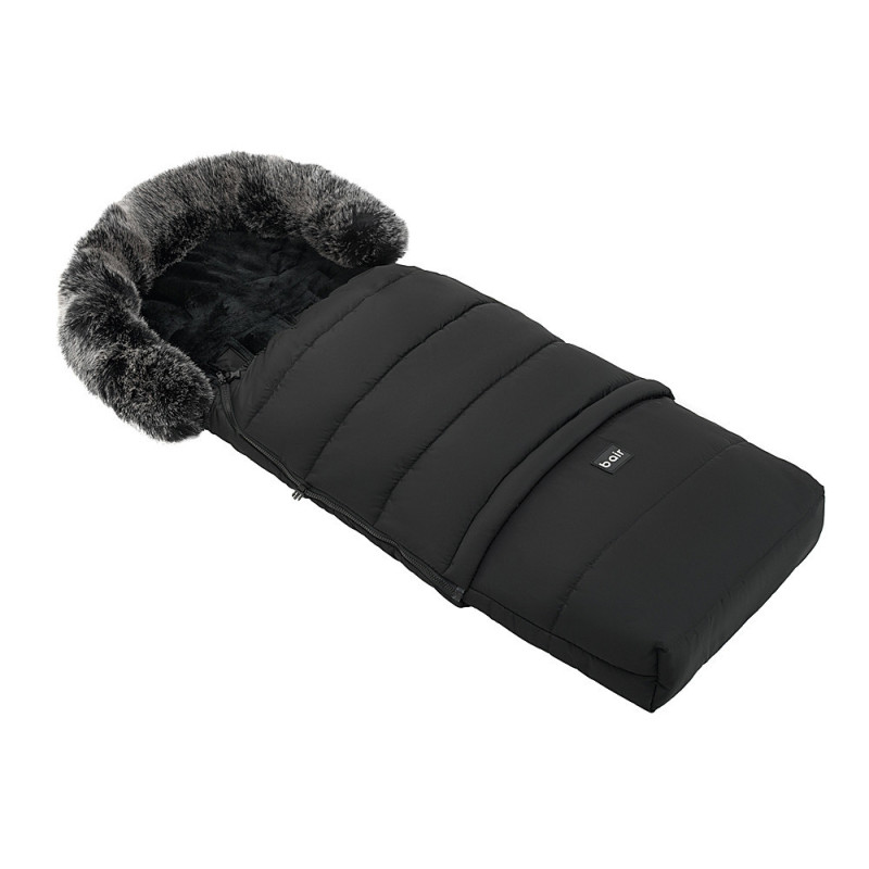 Капюшон конверта щільно стягується для збереження тепла всередині та оздоблений знімним хутром.