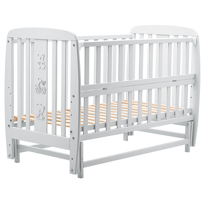 Особливістю моделі є відкидна бокова стінка. У міру зростання дитини боковину можна опустити до середини, дозволяючи їй самостійно та безпечно залишати ліжечко. За потреби бокову стінку можна повністю зняти.