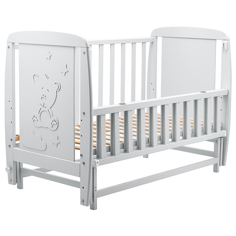 Дитяче ліжечко Bair Умка, виготовлене з натурального та міцного масиву бука, забезпечить вашому малюку міцний та здоровий сон. Декоративні елементи у вигляді ведмедика привернуть увагу дитини та піднімуть їй настрій.