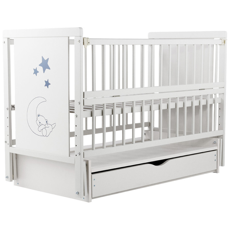 Ліжечко Bair Ведмедик VMY-3 маятник, шухляда, відкидний бік бук білий
