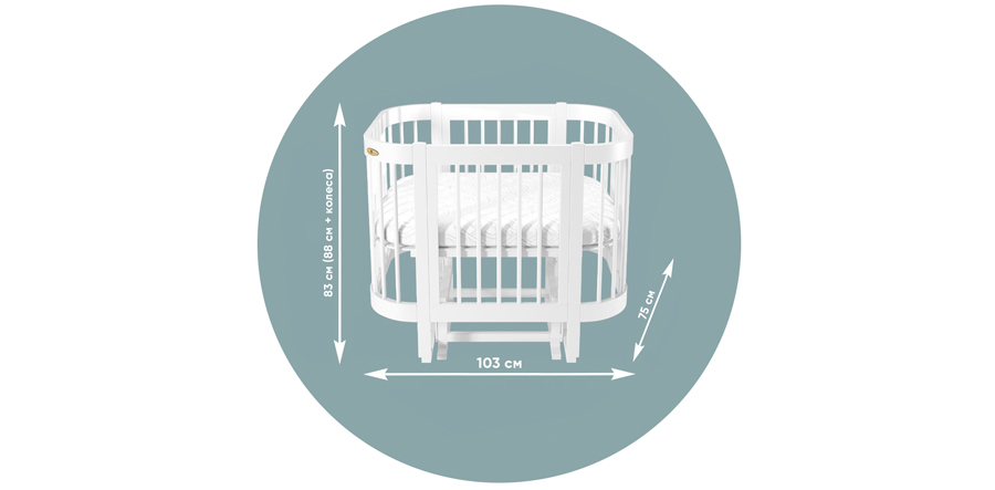 - Маятник для міцного сну. Маятниковий механізм (до комплекту не входить) допомагає плавно заколисувати дитину і сприяє швидкому засинанню. Ви можете встановити систему для заколисування на колеса та переміщати ліжечко по кімнаті.