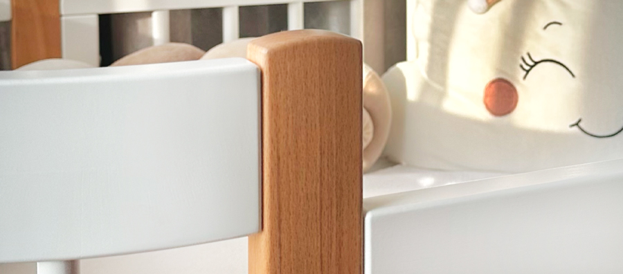 - Ліжечко не має гострих кутів і зазорів, які можуть призвести до травми. Відстань між круглими прутами відповідає стандарту безпеки EN716-2:2017