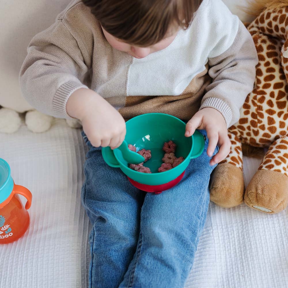 Двоколірна тарілочка з кришкою та ложкою на присосці Baboo – комфорт і зручність для малюка.