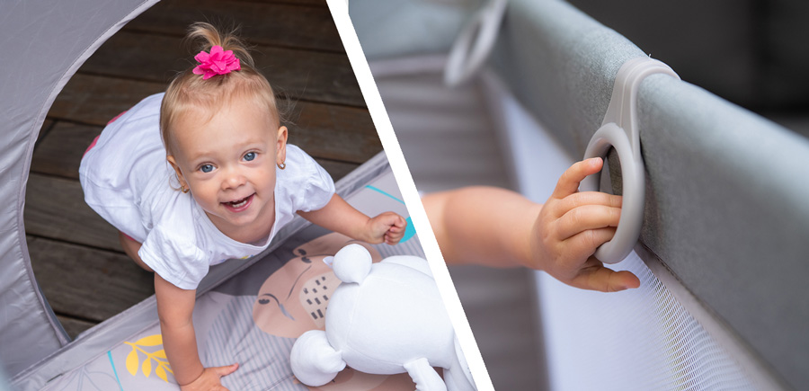 Відкрийте для себе ідеальний і безпечний простір для дитячих ігор і відпочинку - манеж Espiro Play Up з додатковими кільцями для тримання. Він ідеально підходить для найменших, які тільки починають відкривати для себе красу незалежності та вчаться самостійно підводитись і ходити.