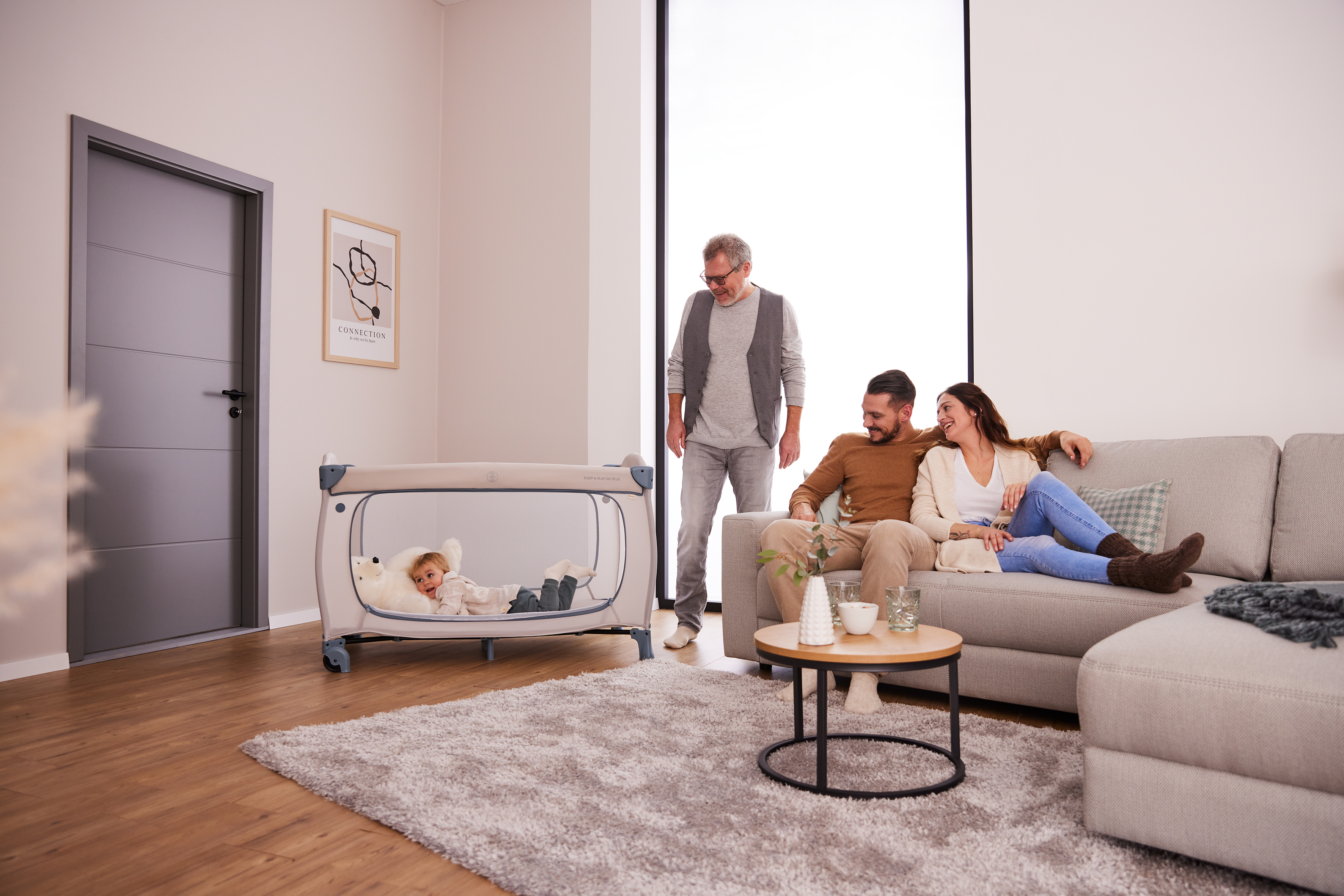 Це ліжечко не тільки надає можливість для сну, а й стає ідеальним місцем для ігор завдяки манежу. Легка та швидка збірка, спеціальний механізм складання і зручна сумка для транспортування роблять його ідеальним варіантом для подорожей. Дві сітчасті вставки забезпечують відмінну циркуляцію повітря, а великий люк дозволяє малюкові самостійно виходити з ліжечка, що забезпечує додатковий комфорт. Завдяки коліщаткам, переміщення ліжечка з кімнати в кімнату стає легким і безпечним.