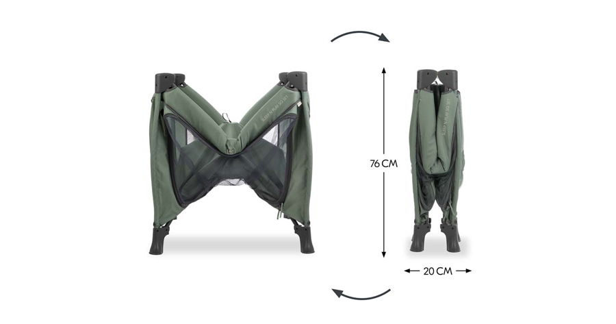 Компактний, практичний і навіть узгоджений за кольором: Sleep N Play SQ Set можна ідеально сховати в сумці для транспортування, що додається в комплекті. І його легко взяти з собою.