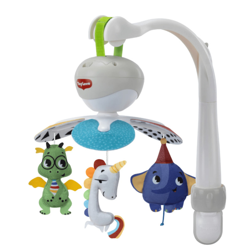 Мультифункціональний мобіль 3 в 1 Tiny Love — це універсальний музичний пристрій, спеціально розроблений для використання вдома та під час подорожей, який легко трансформується завдяки трьом типам кріплень: стандартному стійкому тримачу для ліжечка, кліпсі-«крабу» для коляски та ремінцю на липучці для автокрісла. Мобіль відтворює 30 хвилин безперервної музики (5 різних мелодій), має обертові іграшки-підвіски та контрастні деталі, що ідеально сприяє розвитку візуального і слухового сприйняття малюка, забезпечуючи відчуття комфорту та знайомої атмосфери в будь-якому місці.