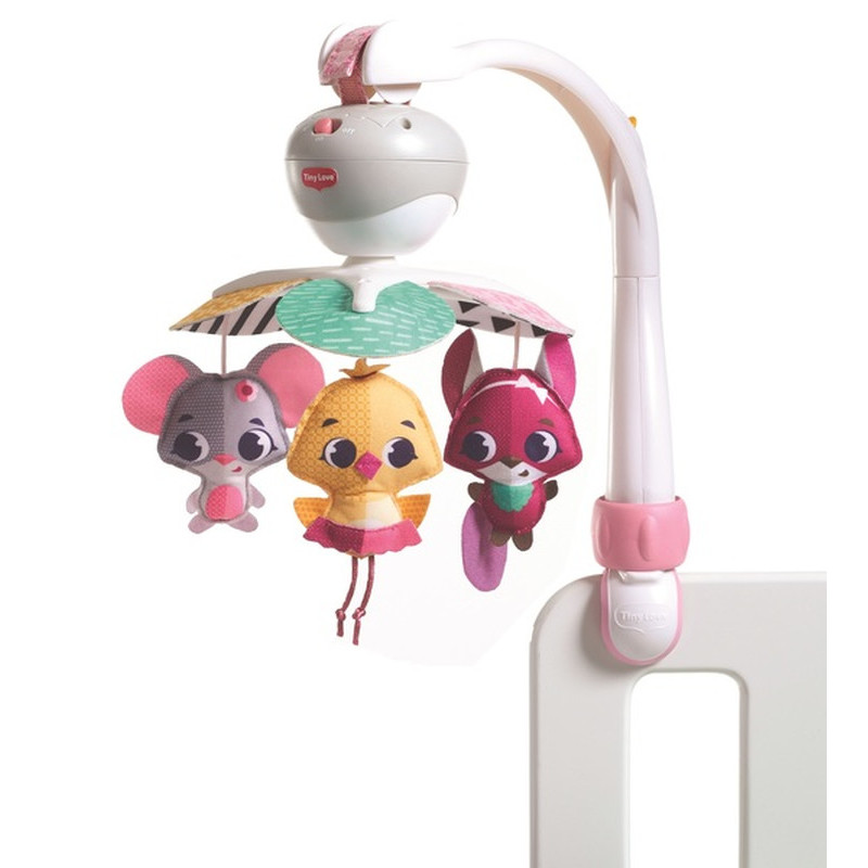 Мультифункціональний мобіль 3 в 1 Tiny Love — це універсальний музичний пристрій, спеціально розроблений для використання вдома та під час подорожей, який легко трансформується завдяки трьом типам кріплень: стандартному стійкому тримачу для ліжечка, кліпсі-«крабу» для коляски та ремінцю на липучці для автокрісла. Мобіль відтворює 30 хвилин безперервної музики (5 різних мелодій), має обертові іграшки-підвіски та контрастні деталі, що ідеально сприяє розвитку візуального і слухового сприйняття малюка, забезпечуючи відчуття комфорту та знайомої атмосфери в будь-якому місці.