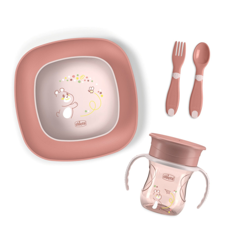 Набір посуду Chicco Set Pappa включає все найнеобхідніше для навчання малюка їсти самостійно: 2 тарілки (для перших і других страв), ергономічну чашку та безпечні ложку і виделку. Особливості набору: для дітей від 12 місяців; чашка Perfect Cup зі знімними ручками та силіконовою мембраною 360°. Дозволяє пити з будь-якого боку, мінімізуючи проливання рідини; ложка і виделка First Cutlery з нековзними вставками на ручках для зручності у використанні; глибока миска і тарілка для їжі різної консистенції; набір не містить бісфенол-А (BPA 0%); дозволено мити на верхній полиці посудомийної машини та використовувати в мікрохвильовій печі. З Set Pappa від Chicco годування стає цікавішим завдяки кумедним малюнкам на посуді. Яскрава упаковка робить набір Set Prima Pappa чудовим рішенням для подарунку.