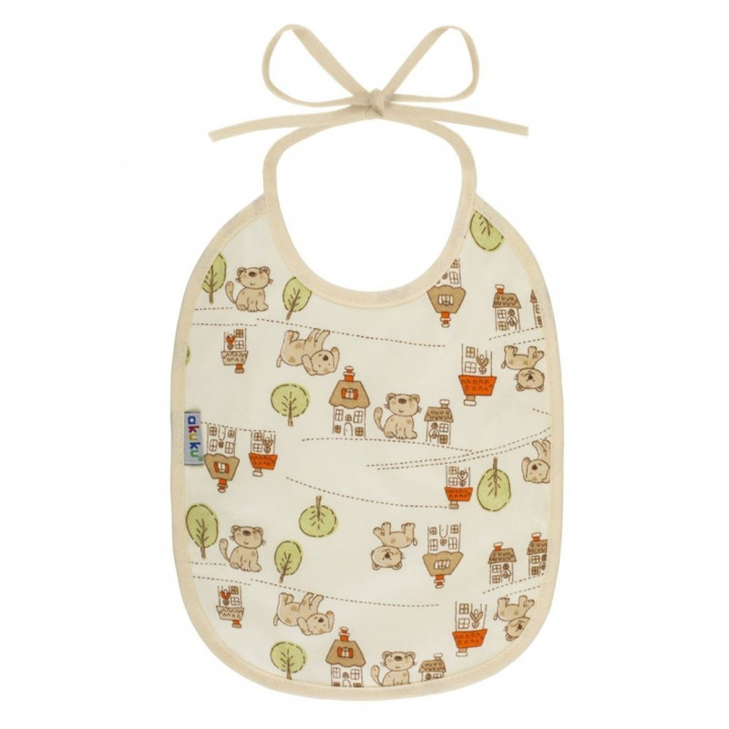 Нагрудник виготовлений з високоякісної бавовни. Внутрішня частина вистелена водонепроникним шаром з м'якої клейонки, що додатково захищає одяг від бруду і робить водонепроникним нагрудник. Зручна і практична зав'язка підвищує зручність носіння нагрудника, а барвисті аплікації роблять їжу дитини приємнішою. Зроблено у Польщі.