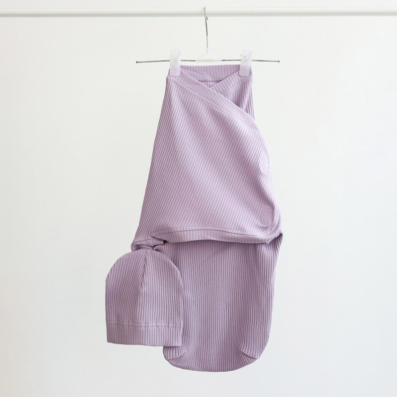 Пелюшка MagBaby Євро на липучках з шапочкою Strip, 0-3 міс бузкова