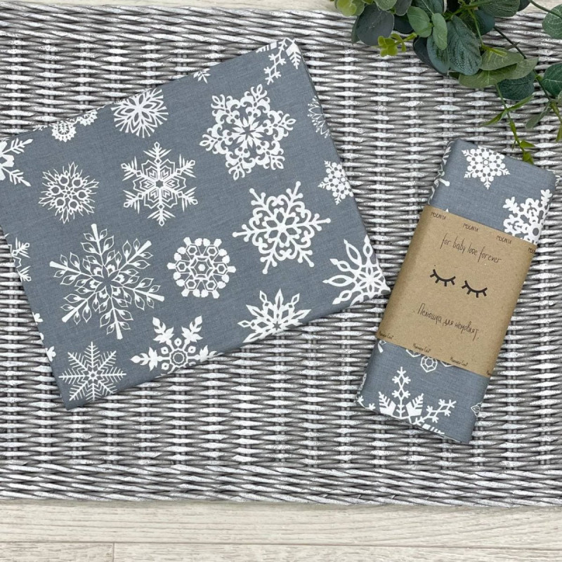 Пелюшка Msonya бязь Сніжинки білі на сірому
