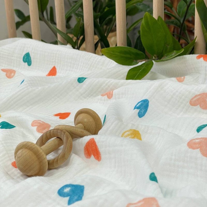 Пелюшка Msonya муслін Сердечка акварельні оранж/зелений 95х135
