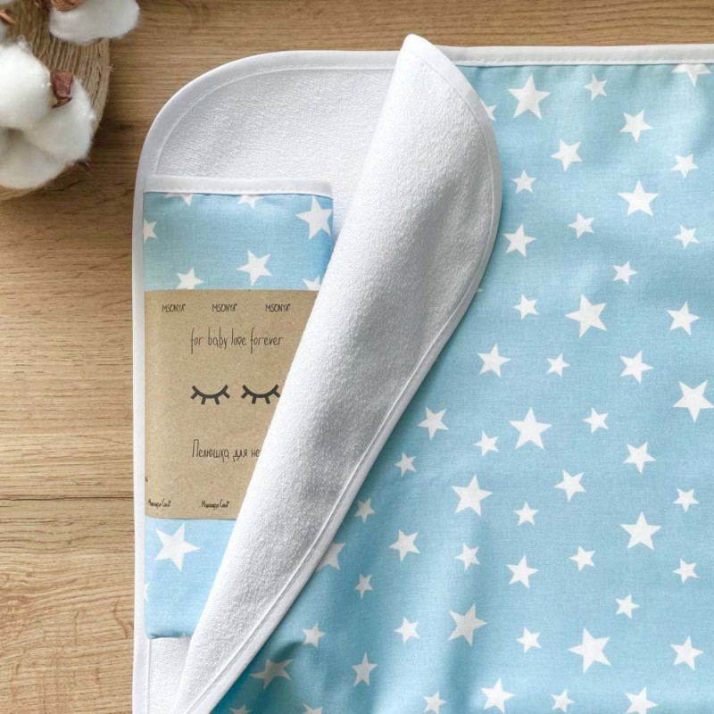 Пелюшка Msonya Непромокаюча 50х80 см Зірка розсип біла на блакитному