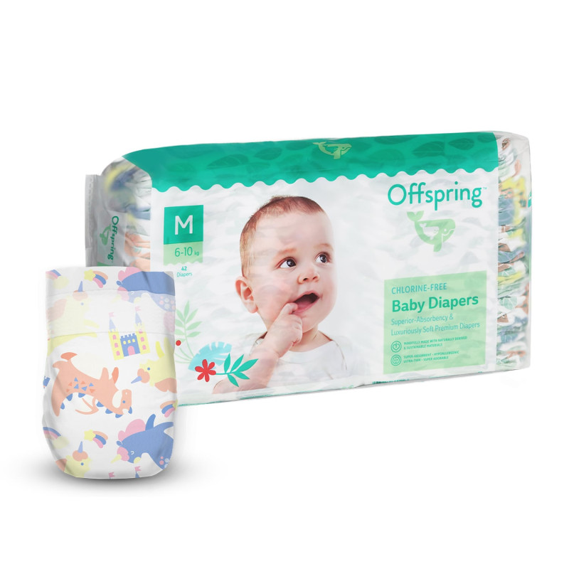 Екологічні та ультрапоглинаючі підгузки Offspring FairyTale вагою від 6 до 10 кг – результат багаторічних досліджень вчених та батьків, які створили найбезпечніший продукт, дозволений навіть тим, хто страждає на екзему. Інстаграмні підгузки Offspring вироблено з екологічно чистих матеріалів найвищої якості з Японії, Європи та США: з деревної целюлози без вмісту хлору, суперабсорбуючого полімеру, нетоксичного клею, ультрадихаючої плівки та чорнил без вмісту важких металів. Не дивно, що турботливі батьки купують 17 млн підгузків щодня. Кому потрібні штанці, якщо на дитині такий модний підгузок? Чому саме Offspring? Створені відповідно до суворих інструкцій найбільшого французького агентства по сертифікації натуральної та органічної косметики Ecocert COSMOS, визнаного у всьому світі. Offspring вказують усі інгредієнти та дотримуються 100% прозорості на всіх етапах виробництва. Схвалені педіатрами та дерматологами. Найвища оцінка незалежного німецького дерматологічного інституту Dermatest® свідчить, що підгузки Offspring не призводять до алергічних реакцій та подразнень шкіри, оскільки є вільними від алергенів та токсичних речовин. Гіпоалергенно. Не містять жодних хімічних речовин, які становлять ризик для здоров’я дитини. Унікальний дизайн, створений за допомогою чорнила, що не містить важких металів і пройшло перевірку California Prop 65 – офіційно відому як Закон США про токсичні речовини, створений у 1986 р. у відповідь на небезпечні речовини, що забруднювали каліфорнійську воду. Суперпоглинаючий внутрішній шар з ефектом ніжнесенької бавовни. 100% вільна від хлору деревна целюлоза з FSC-сертифікованих джерел. Сертифікат FSC (Forest Stewardship Council) гарантує, що сировина постачається із відповідально керованих лісових господарств і простежується в усіх виробничих та торгових процесах. 100% без хлору – виготовлені без хлорного відбілювання, оскільки діоксини, що зʼявляються під час цього процесу, можуть викликати рак. Без барвників та оптичних відбілювачів, які можуть спровокувати виникнення висипів та подразнення. Без свинцю, здатного нашкодити нервовій системі дитини, що розвивається. Відповідність вимогам щодо вмісту свинцю в продуктах для дітей, згідно з розділом 101 Закону США про підвищення безпеки споживчих товарів (CPSIA) від 2008 р. Фішки Offspring 11 суперабсорбуючих шарів та новітня запатентована технологія подвійного поглинання з використанням кращого японського суперабсорбенту, який миттєво затримує і не пропускає вологу. 12 годин сухості та захисту від протікання* – екстрамʼяке внутрішнє покриття з 3D-тисненням зберігає попу дитини сухою. Нетоксичні – без латексу, токсичних чорнил, ароматизаторів та речовин, що маскують запах. Стерильні – екстрам'який внутрішній і зовнішній шари оброблено гарячою парою за технологією Hot Air®. Липучки без гострих країв можуть застібатися і розстібатися безліч разів – захищають ніжну шкіру дитини від подряпин. Удосконалений супереластичний пояс з полімерного спандексу та подвійні бортики, що захищають від протікань. Без індикатору вологості, який не відповідає екологічним стандартам Offspring. Максимально повітропроникні – ультрадихаючі шари створюють максимальний комфорт і дозволяють шкірі дихати. Бренд Offspring пройшов сувору перевірку на відповідність екологічним стандартам, щоб відповідати довірі батьків у всьому світі: Сертифікат 