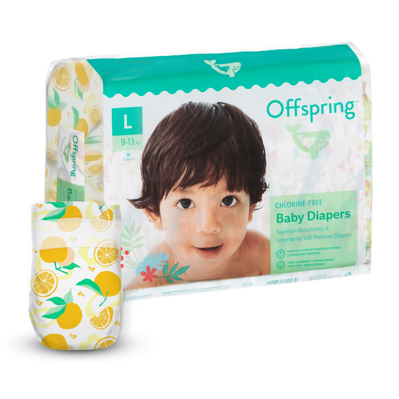 Екологічні та ультрапоглинаючі підгузки Offspring Tangy Orange вагою від 9 до 13 кг – результат багаторічних досліджень вчених та батьків, які створили найбезпечніший продукт, дозволений навіть тим, хто страждає на екзему. Інстаграмні підгузки Offspring вироблено з екологічно чистих матеріалів найвищої якості з Японії, Європи та США: з деревної целюлози без вмісту хлору, суперабсорбуючого полімеру, нетоксичного клею, ультрадихаючої плівки та чорнил без вмісту важких металів. Не дивно, що турботливі батьки купують 17 млн підгузків щодня. Кому потрібні штанці, якщо на дитині такий модний підгузок? Чому саме Offspring? Створені відповідно до суворих інструкцій найбільшого французького агентства по сертифікації натуральної та органічної косметики Ecocert COSMOS, визнаного у всьому світі. Offspring вказують усі інгредієнти та дотримуються 100% прозорості на всіх етапах виробництва. Схвалені педіатрами та дерматологами. Найвища оцінка незалежного німецького дерматологічного інституту Dermatest® свідчить, що підгузки Offspring не призводять до алергічних реакцій та подразнень шкіри, оскільки є вільними від алергенів та токсичних речовин. Гіпоалергенно. Не містять жодних хімічних речовин, які становлять ризик для здоров’я дитини. Унікальний дизайн, створений за допомогою чорнила, що не містить важких металів і пройшло перевірку California Prop 65 – офіційно відому як Закон США про токсичні речовини, створений у 1986 р. у відповідь на небезпечні речовини, що забруднювали каліфорнійську воду. Суперпоглинаючий внутрішній шар з ефектом ніжнесенької бавовни. 100% вільна від хлору деревна целюлоза з FSC-сертифікованих джерел. Сертифікат FSC (Forest Stewardship Council) гарантує, що сировина постачається із відповідально керованих лісових господарств і простежується в усіх виробничих та торгових процесах. 100% без хлору – виготовлені без хлорного відбілювання, оскільки діоксини, що зʼявляються під час цього процесу, можуть викликати рак. Без барвників та оптичних відбілювачів, які можуть спровокувати виникнення висипів та подразнення. Без свинцю, здатного нашкодити нервовій системі дитини, що розвивається. Відповідність вимогам щодо вмісту свинцю в продуктах для дітей, згідно з розділом 101 Закону США про підвищення безпеки споживчих товарів (CPSIA) від 2008 р. Фішки Offspring 11 суперабсорбуючих шарів та новітня запатентована технологія подвійного поглинання з використанням кращого японського суперабсорбенту, який миттєво затримує і не пропускає вологу. 12 годин сухості та захисту від протікання* – екстрамʼяке внутрішнє покриття з 3D-тисненням зберігає попу дитини сухою. Нетоксичні – без латексу, токсичних чорнил, ароматизаторів та речовин, що маскують запах. Стерильні – екстрам'який внутрішній і зовнішній шари оброблено гарячою парою за технологією Hot Air®. Липучки без гострих країв можуть застібатися і розстібатися безліч разів – захищають ніжну шкіру дитини від подряпин. Удосконалений супереластичний пояс з полімерного спандексу та подвійні бортики, що захищають від протікань. Без індикатору вологості, який не відповідає екологічним стандартам Offspring. Максимально повітропроникні – ультрадихаючі шари створюють максимальний комфорт і дозволяють шкірі дихати. Бренд Offspring пройшов сувору перевірку на відповідність екологічним стандартам, щоби відповідати довірі батьків у всьому світі: Сертифік