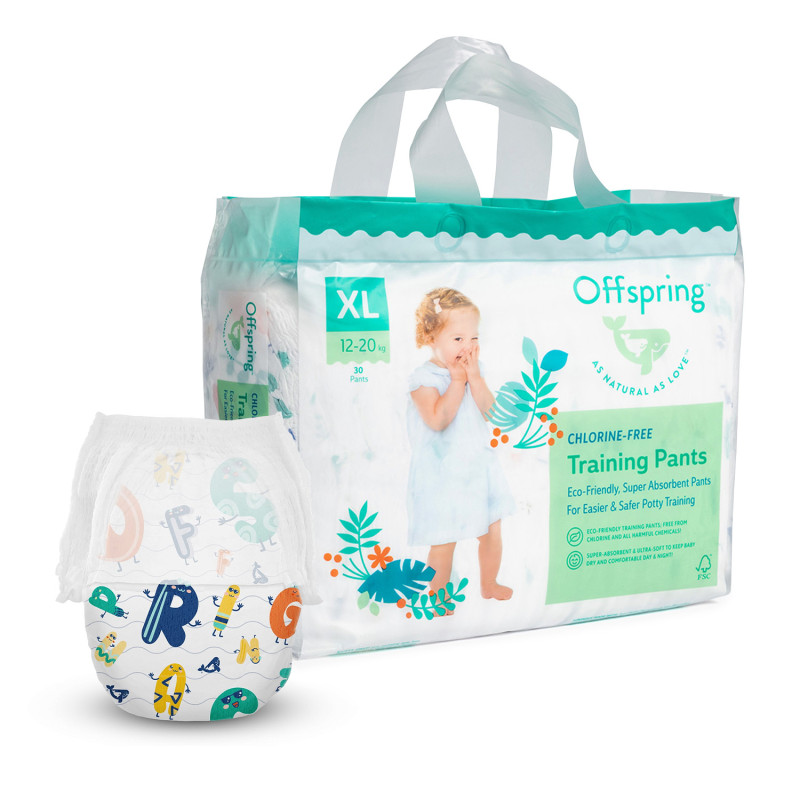 Австралійські екологічні та ультрапоглинаючі підгузки-трусики Offspring ABC Dance для дітей вагою від 12 до 20 кг – результат багаторічних досліджень вчених та батьків, які створили найбезпечніший продукт, дозволений навіть тим, хто страждає на екзему. Інстаграмні підгузки-трусики Offspring вироблено з екологічно чистих матеріалів найвищої якості з Японії, Європи та США: з деревної целюлози без вмісту хлору, суперабсорбуючого полімеру, нетоксичного клею, ультрадихаючої плівки та чорнил без вмісту важких металів. Не дивно, що турботливі батьки купують 17 млн підгузків щодня. Кому потрібні штанці, якщо на дитині такий модний підгузок? Чому саме Offspring? Створені відповідно до суворих інструкцій найбільшого французького агентства по сертифікації натуральної та органічної косметики Ecocert COSMOS, визнаного у всьому світі. Offspring вказують усі інгредієнти та дотримуються 100% прозорості на всіх етапах виробництва. Схвалені педіатрами та дерматологами. Найвища оцінка незалежного німецького дерматологічного інституту Dermatest® свідчить, що підгузки Offspring не призводять до алергічних реакцій та подразнень шкіри, оскільки є вільними від алергенів та токсичних речовин. Гіпоалергенно. Не містять жодних хімічних речовин, які становлять ризик для здоров’я дитини. Унікальний дизайн, створений за допомогою чорнила, що не містить важких металів і пройшло перевірку California Prop 65 – офіційно відому як Закон США про токсичні речовини, створений у 1986 р. у відповідь на небезпечні речовини, що забруднювали каліфорнійську воду. Суперпоглинаючий внутрішній шар з ефектом ніжнесенької бавовни. 100% вільна від хлору деревна целюлоза з FSC-сертифікованих джерел. Сертифікат FSC (Forest Stewardship Council) гарантує, що сировина постачається із відповідально керованих лісових господарств і простежується в усіх виробничих та торгових процесах. 100% без хлору – виготовлені без хлорного відбілювання, оскільки діоксини, що зʼявляються під час цього процесу, можуть викликати рак. Без барвників та оптичних відбілювачів, які можуть спровокувати виникнення висипів та подразнення. Без свинцю, здатного нашкодити нервовій системі дитини, що розвивається. Відповідність вимогам щодо вмісту свинцю в продуктах для дітей, згідно з розділом 101 Закону США про підвищення безпеки споживчих товарів (CPSIA) від 2008 р. Фішки Offspring 11 суперабсорбуючих шарів та новітня запатентована технологія подвійного поглинання з використанням кращого японського суперабсорбенту, який миттєво затримує і не пропускає вологу. 12 годин сухості та захисту від протікання* – екстрамʼяке внутрішнє покриття з 3D-тисненням зберігає попу дитини сухою. Нетоксичні – без латексу, токсичних чорнил, ароматизаторів та речовин, що маскують запах. Стерильні – екстрам'який внутрішній і зовнішній шари оброблено гарячою парою за технологією Hot Air®. Удосконалений супереластичний пояс з полімерного спандексу та подвійні бортики, що захищають від протікань. Без індикатору вологості, який не відповідає екологічним стандартам Offspring. Максимально повітропроникні – ультрадихаючі шари створюють максимальний комфорт і дозволяють шкірі дихати. Спеціальна наклейка на задній частині – для легкої утилізації використаного підгузка. Легко вдягати та знімати: трусики потрібно просто натягнути, а для зняття – легким рухом розірвати боковий шов. Австралійський 