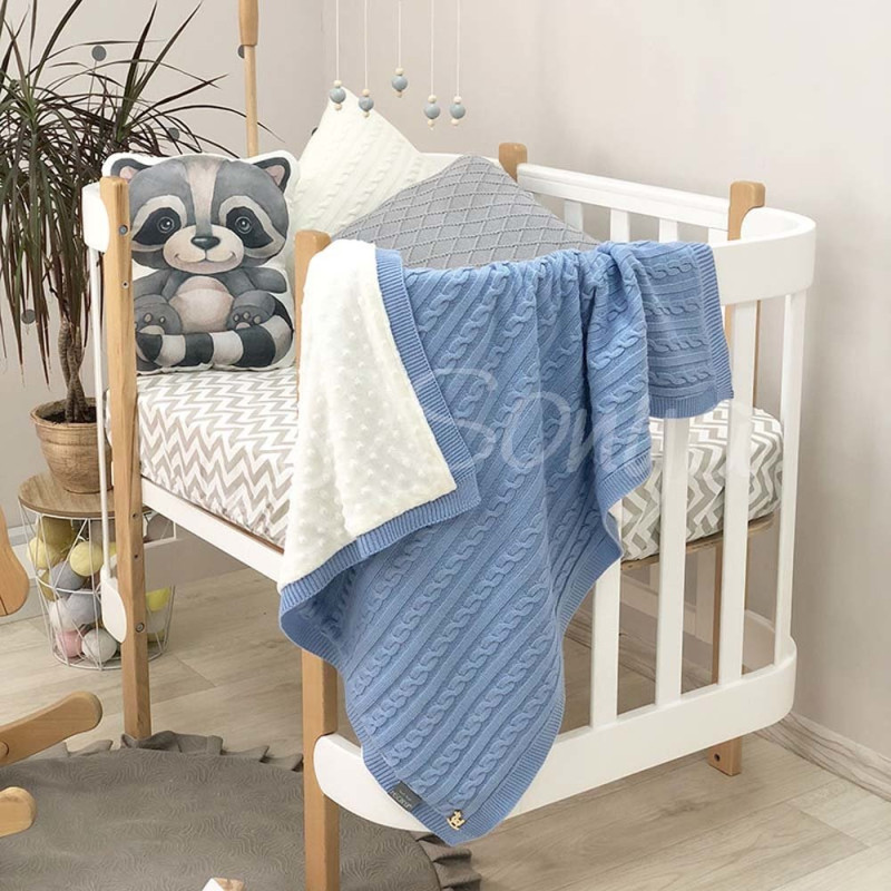 Плед Msonya Бавовняний на підкладці Wellsoft Коса 80х100 см блакитний