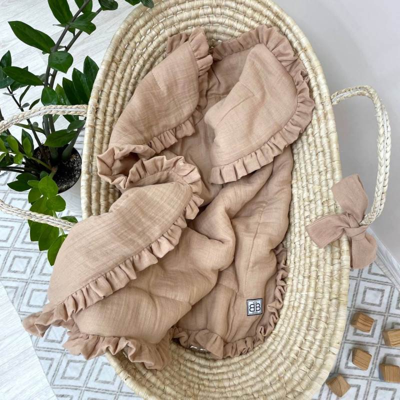 для щоденного використання мусліновий плед-конверт з рюшами і бантом.